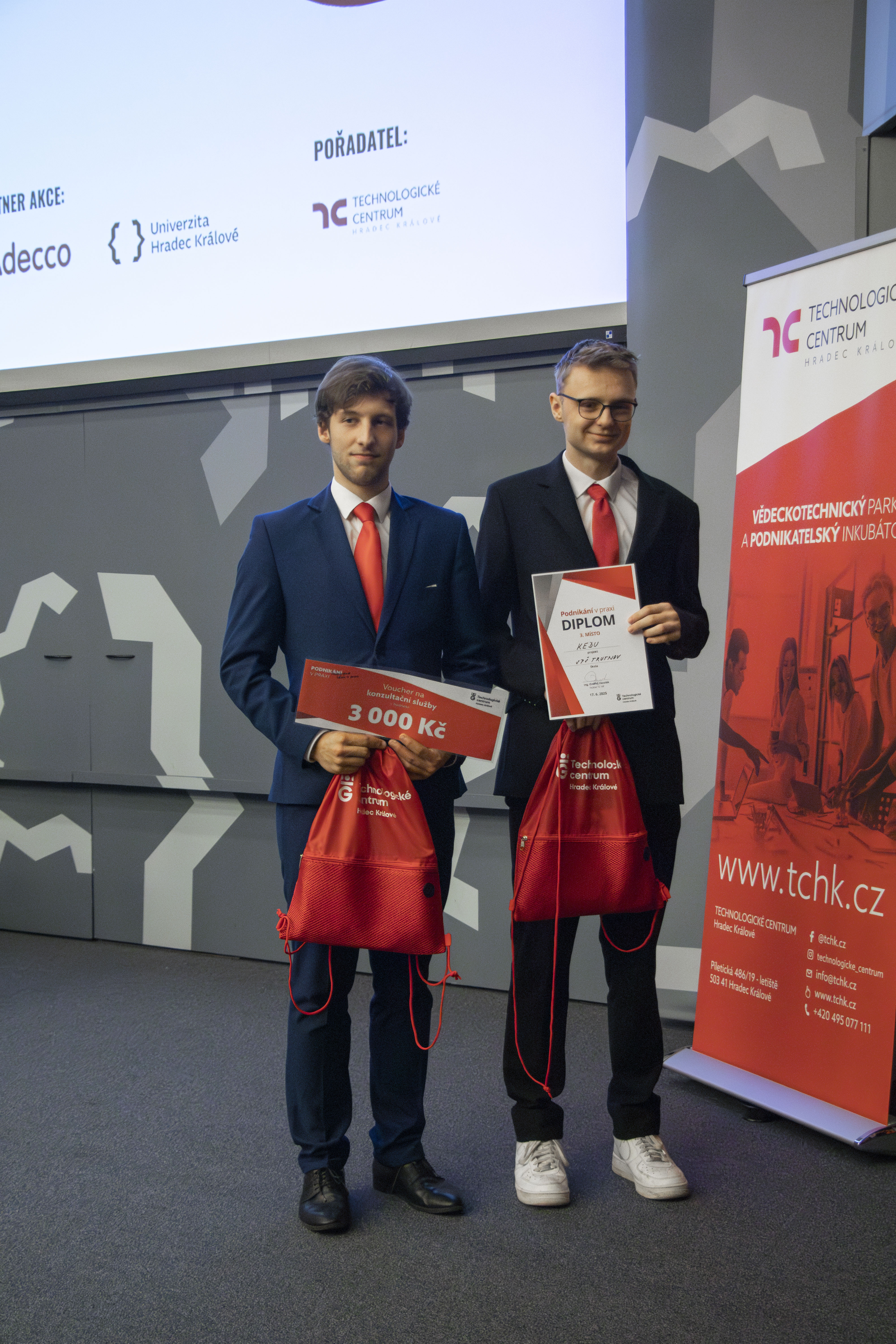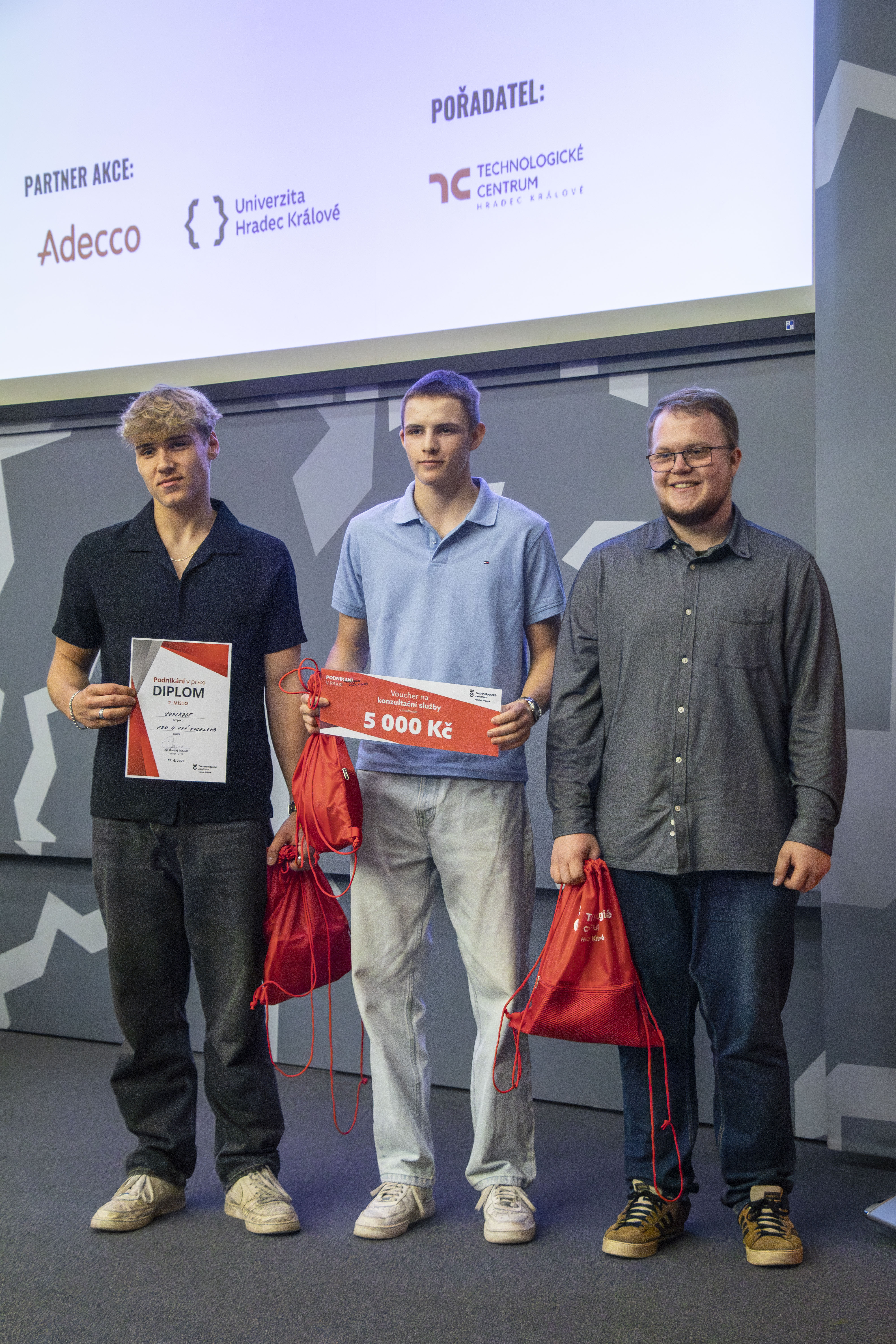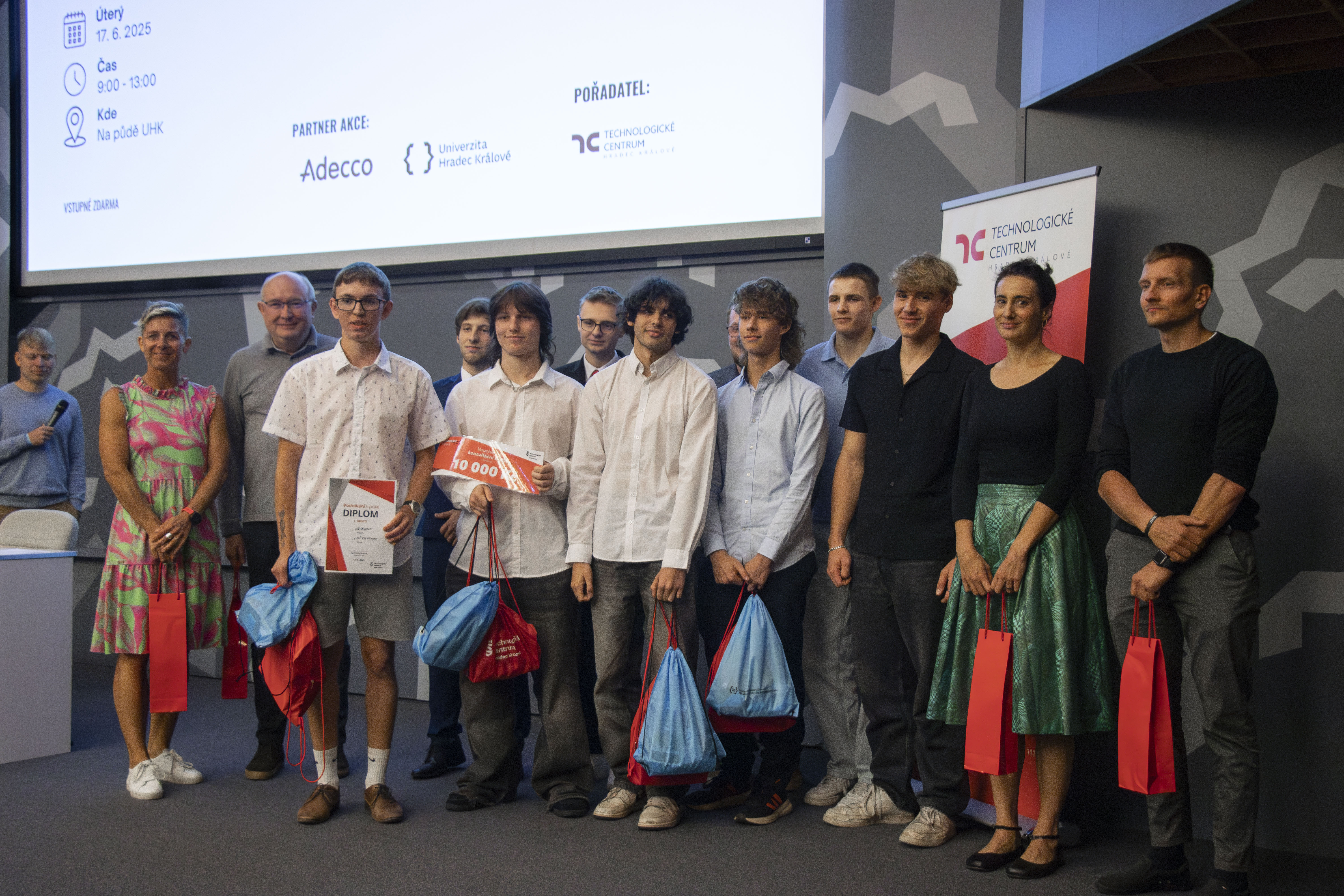 Vítězové si odnesli hodnotné ceny – od elektroniky přes mentoring až po konzultace u nás v Technologickém centru Hradec Králové. Podporu poskytla také společnost Adecco a další partneři.